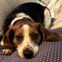 Please read about our beagles currently ready for adoption. Check back often as we have many waiting to come into rescue as space is available. Please submit an application even if you don’t see your match listed below. We do maintain a waitlist for a few categories of beagles that seem to come into our rescue less frequently, such as puppies, young females, or known cat friendly beagles. Once you submit an application and talk with an Adoption Counselor we can add you to our list.