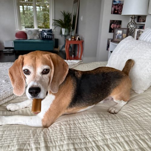 Bean was rescued from a medical testing lab two years ago when he was one year old. He was quite traumatized. He is much better now, but is still scared of boisterous children and men. He does warm up to strangers in time. Bean is feeling comfortable in his home, loves snuggles, playing, and running around. He is a sweetie. He is not perfect - while he does know to 'do his business' outside, he still will on occasion do it in the house (it's so much warmer there in the winter!). An adopter will need to dedicate some time to reinforcing the outside only rule by taking him out on a regular schedule. He and the other beagle in the home had a bit of a rough start, but worked out their differences after a few months. Unfortunately, now after 2 years, he no longer tolerates the other dog, exhibiting resource guarding and starting fights. This could be due to insecurity on his part, or a desire to assert dominance. Either way, Bean would do best as the only pet in the home. Do you have a soft spot in your heart for a fun and loving, but possibly insecure, beagle boy?