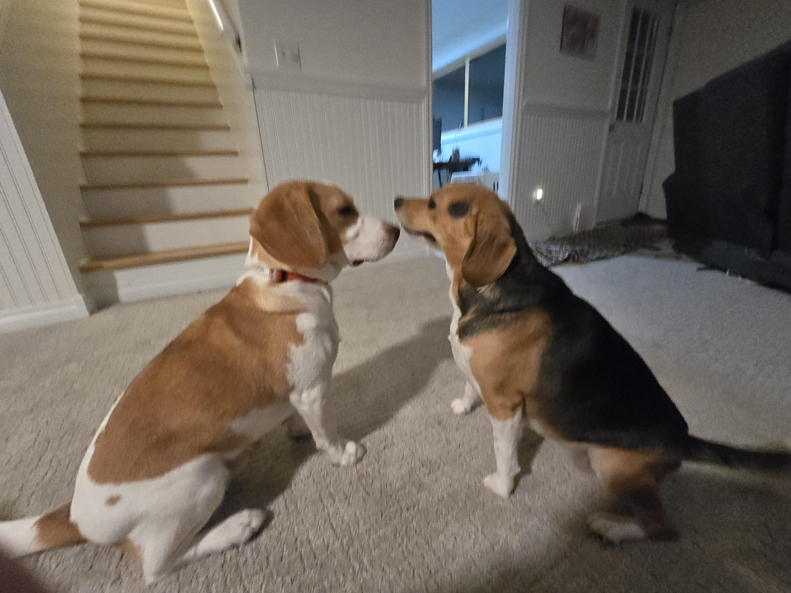 Bentley is an almost–one-year-old Beagle who is still very much a puppy at heart—full of love, enthusiasm, and energy to spare. He has incredibly soft fur, a solid, muscular build, and a whole lot of affection to give. He is extremely large for a Beagle his age, currently about 35–40 lbs, and based on his paws and ears, he’ll likely reach around 45 lbs once fully grown.