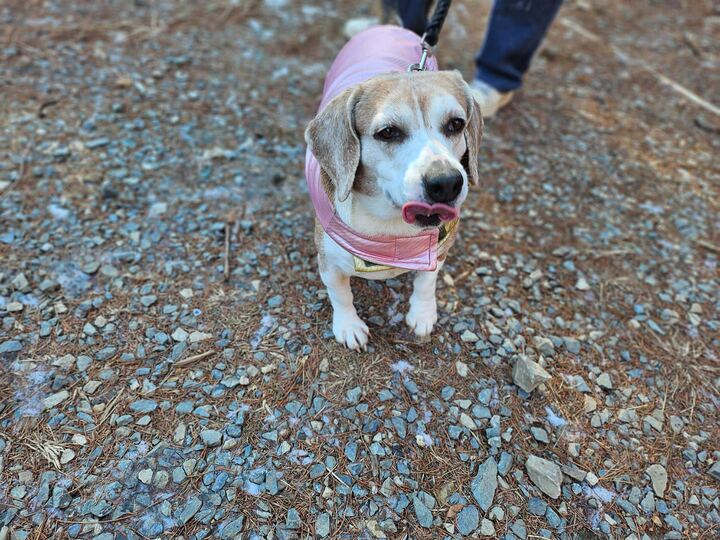 Hari is the more active and curious of the two. She loves walks, exploring her surroundings, and sniffing everything with enthusiasm. She is very food-motivated, making her trainable, though portion control is important. She enjoys human affection and follows people closely. With other dogs, she can be selective and does best with calm, gentle companions.