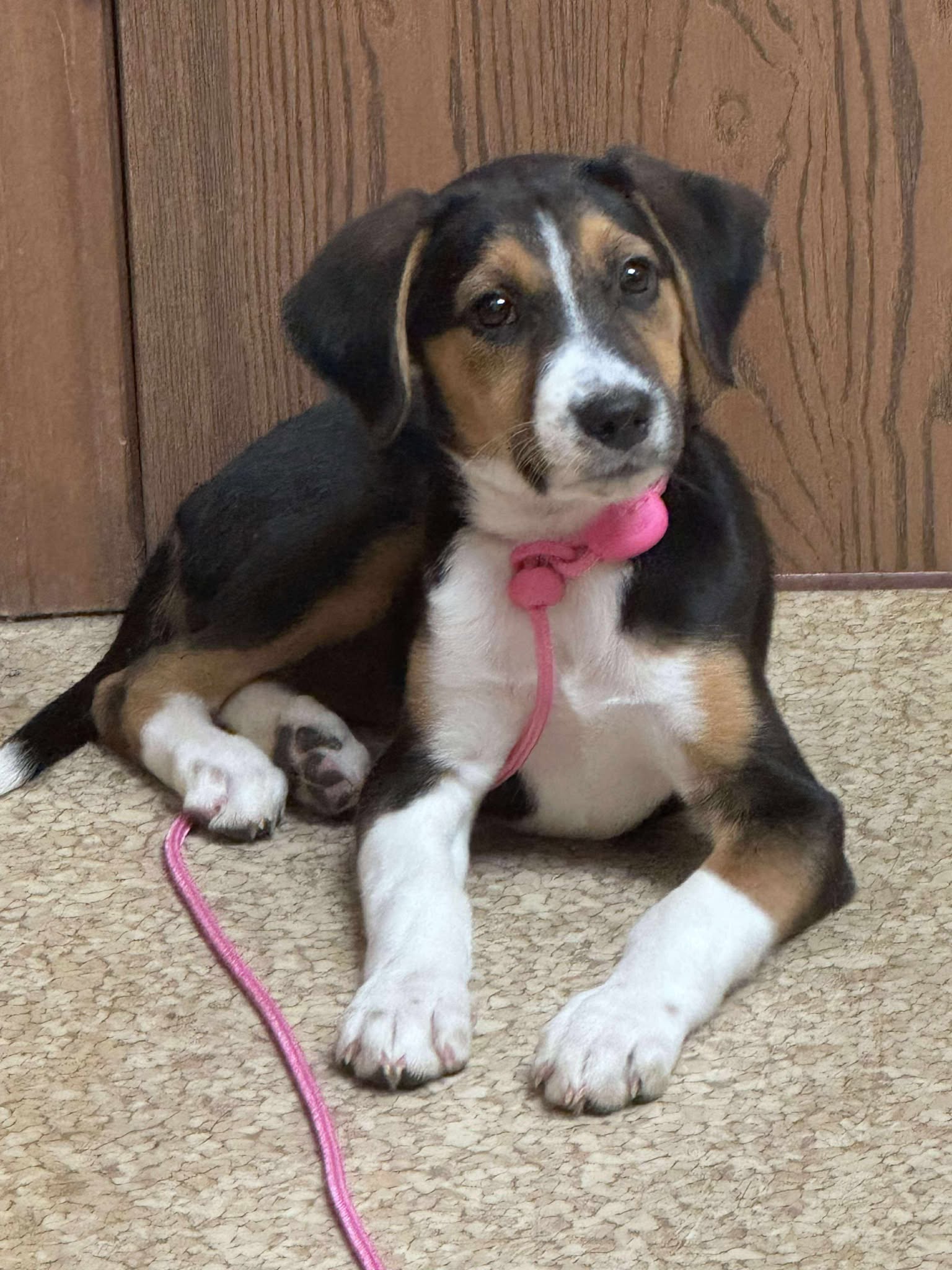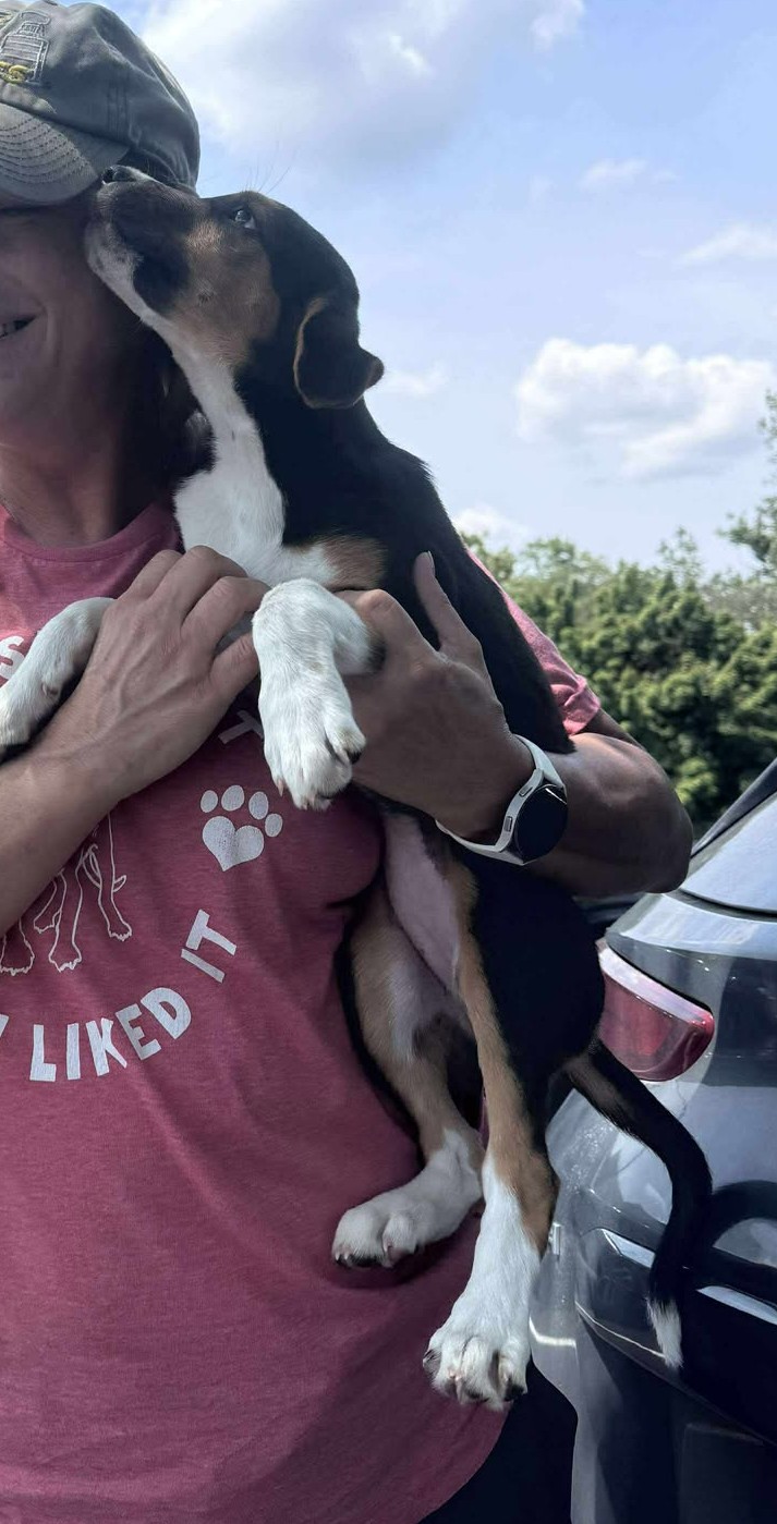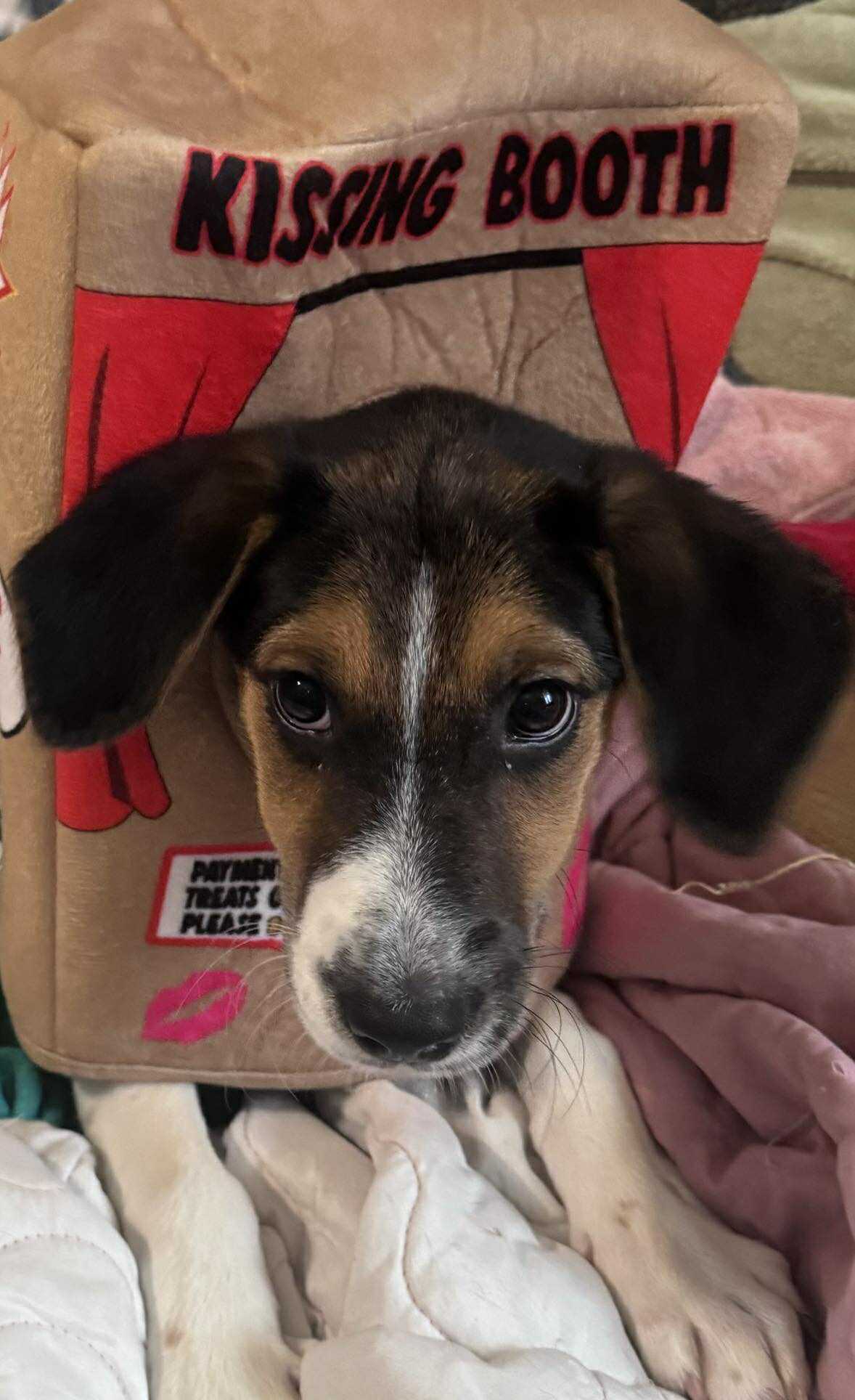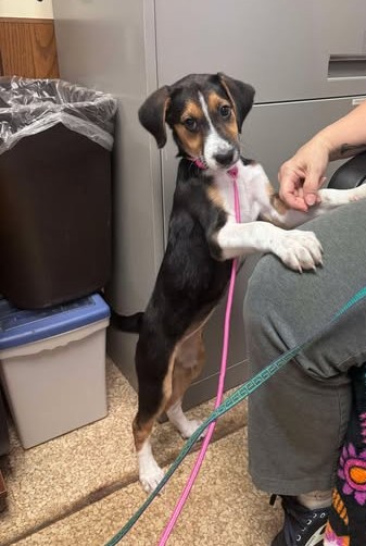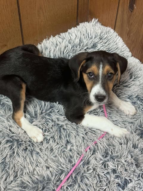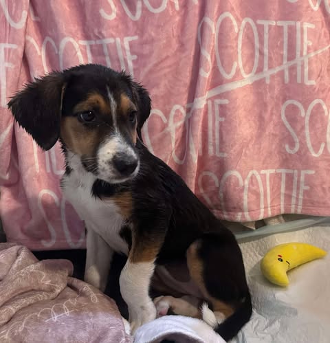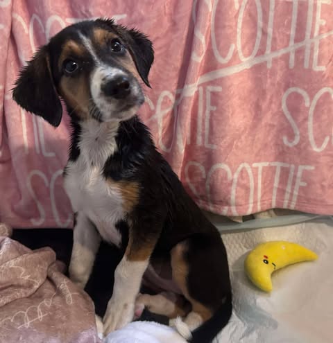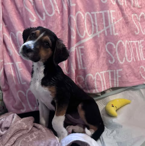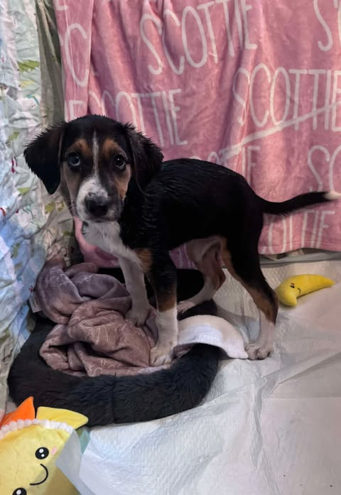 Scottie is a 4-month-old bundle of energy, mischief, and pure puppy charm. Weighing in at around 16 pounds, this sweet little girl is spayed, microchipped, and up to date on her vaccines—though she’ll likely need a few more puppy boosters in the coming weeks to stay on track.