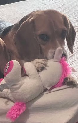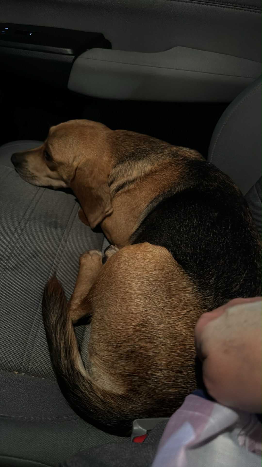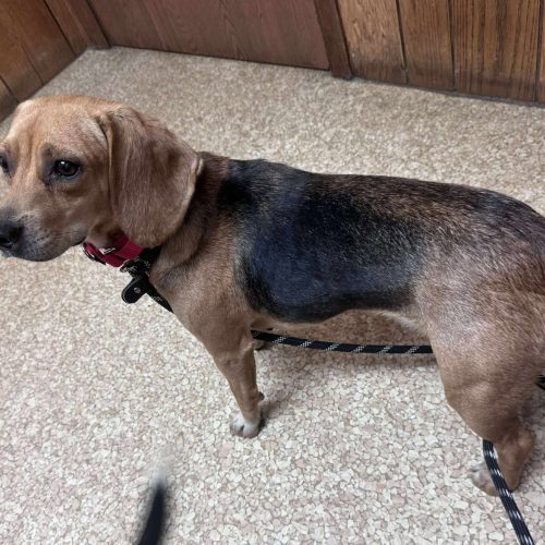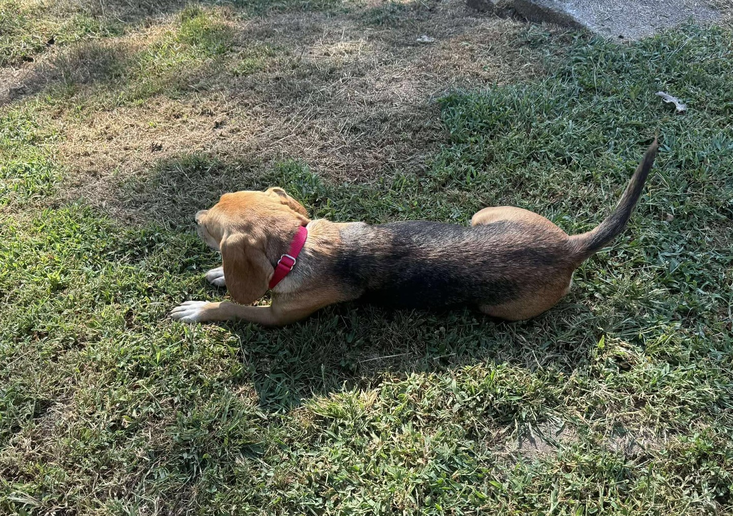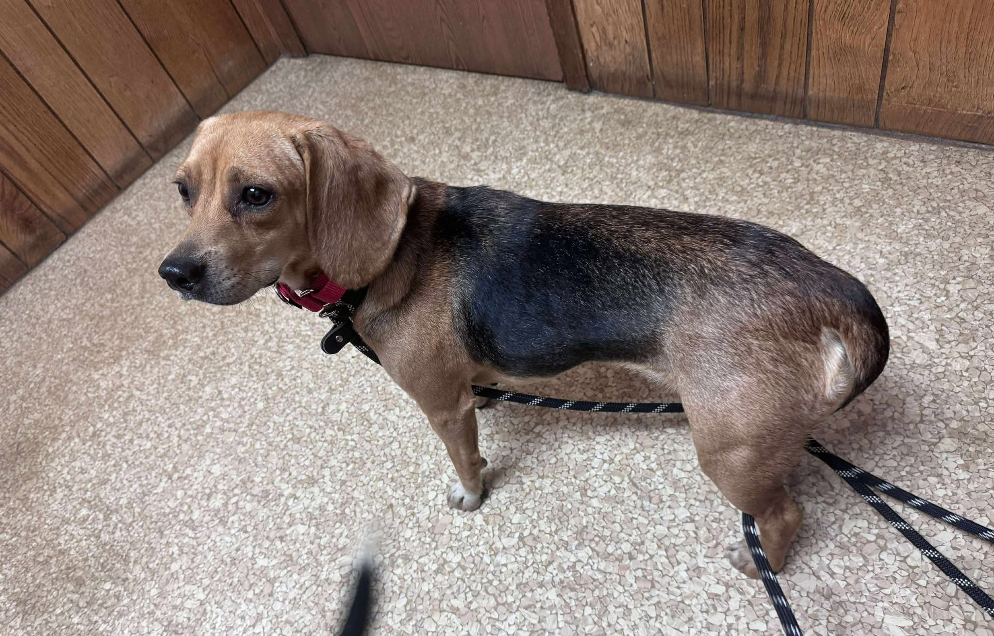 Wendy is a petite and stunning young beagle, weighing just 21.8 pounds and estimated to be around 1 year old. She was found wandering as a stray in early spring by a kind-hearted Good Samaritan. The children who helped care for her gave her the name Wendy, inspired by their neighbor’s dog, Weenie—because she looked just like her.