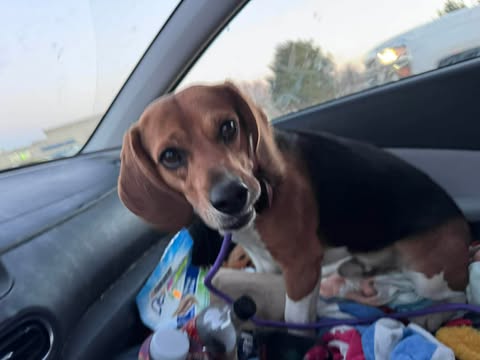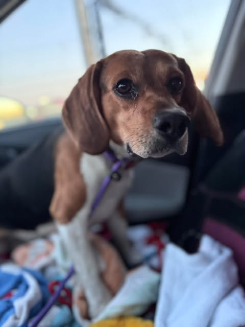 Wilbur is a sweet beagle boy who was found as a stray in Missouri on February 24. Despite his uncertain start, he has proven to be a friendly and easygoing little guy. Wilbur weighs 25.6 pounds and is estimated to be around 18 months to 2 years old.